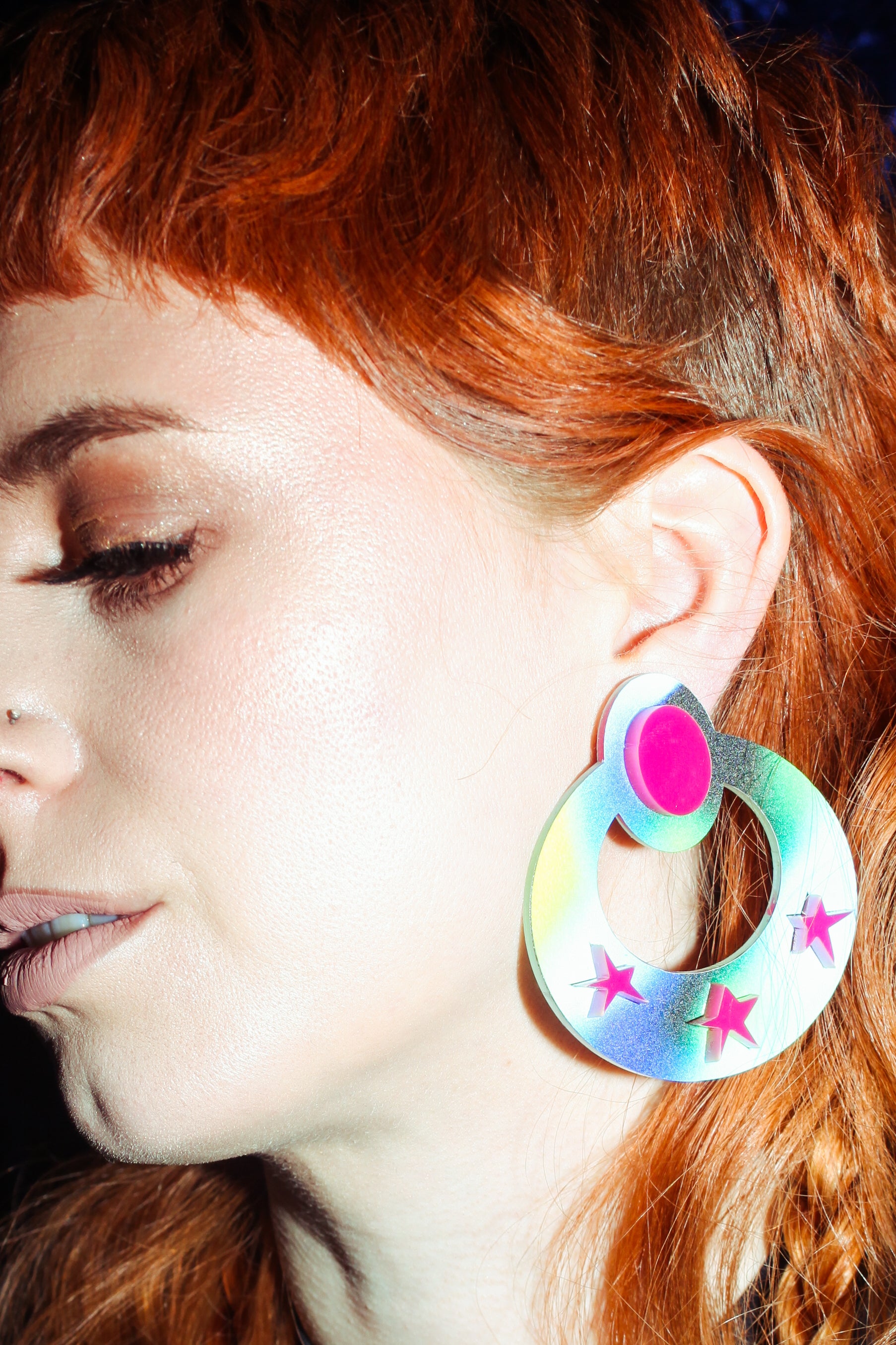 Get ready to turn heads with our Marble Knocker Earrings! Featuring a stunning greeny marble knocker design, topped with hot pink marble stars, these 7cm statement earrings are the perfect mix of bold color and effortless style.