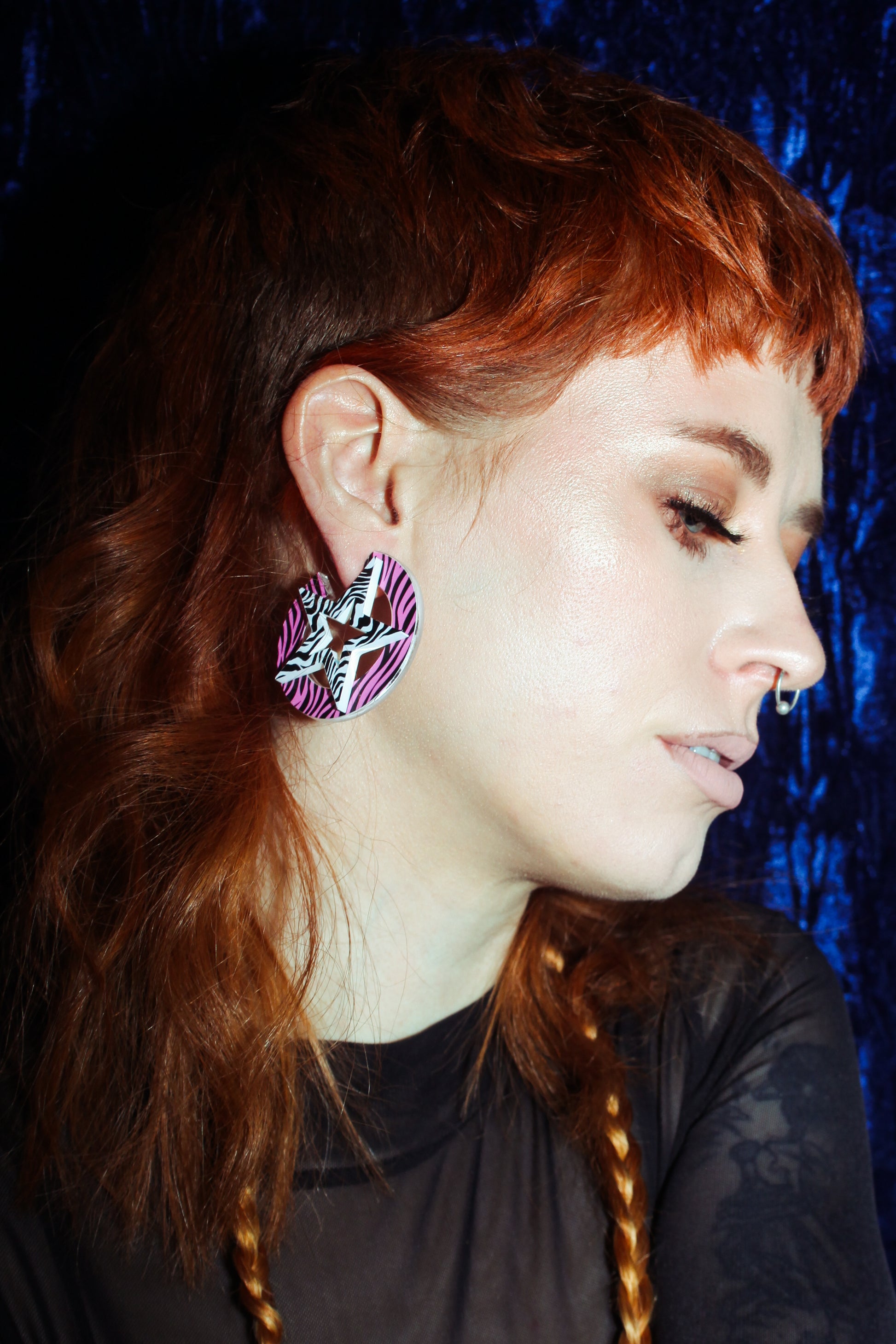 Make a statement with our Pink Zebra Hoop Earrings, featuring a striking pink zebra print paired with a classic zebra print star. These 5cm hoops are the perfect combination of playful and edgy, making them an ideal accessory for any occasion.