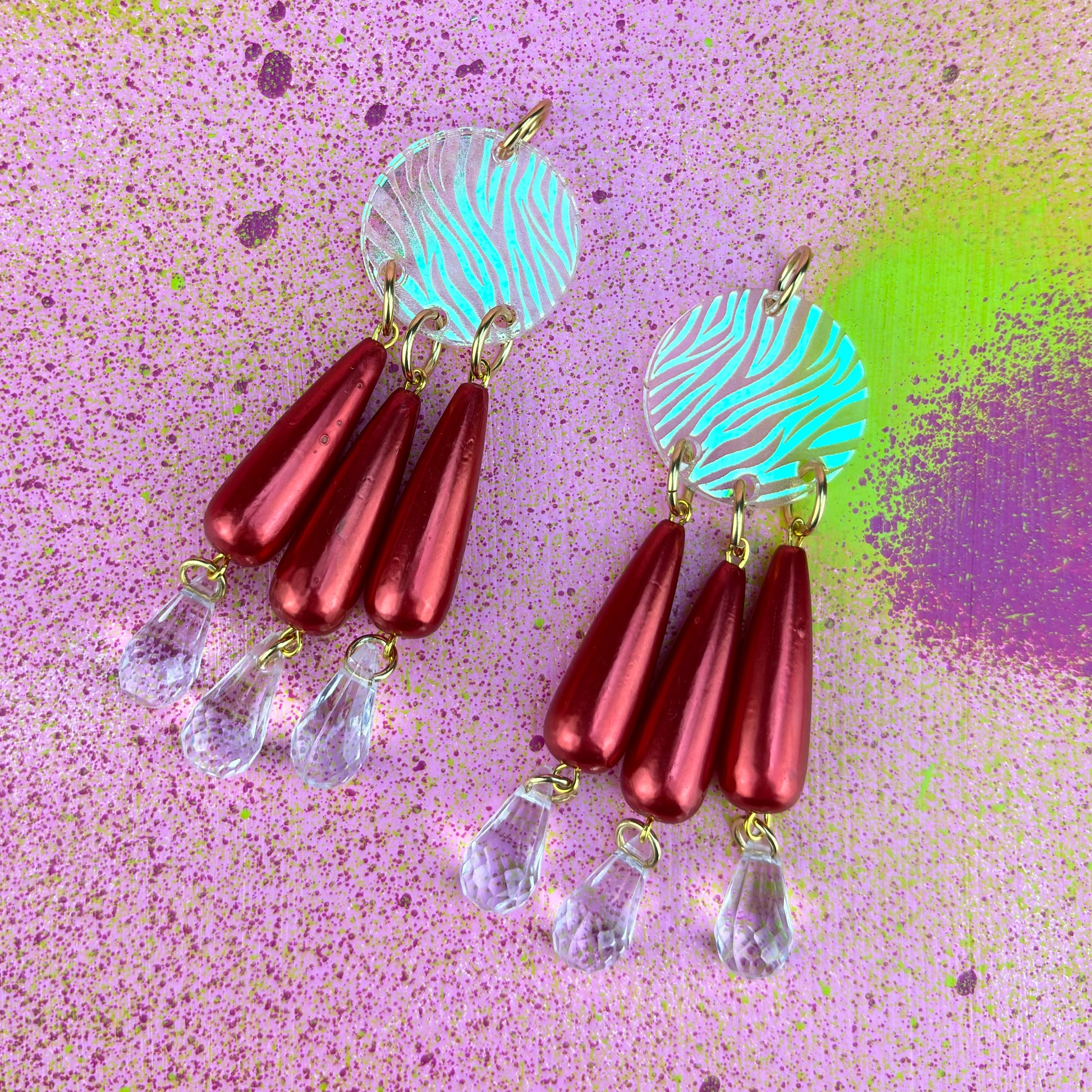 These stunning Zebra Patterned Hoops are meticulously crafted from upcycled acrylic, contributing to our commitment to sustainability by repurposing materials saved from landfill. Enhanced with second-hand beads, pearls, and chains, each pair exudes a unique charm and eco-conscious style. Available as either studs or clip-ons, please indicate your preference by leaving a note at checkout.